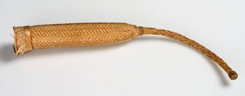 | Erweiterte Beschreibung | In der Mitte und an der Spitze befinden sich Flechtringe aus Leder. Als ethnische Zuordnung ist auf der kolonialzeitlichen Karteikarte "Lam-Heiden" angegeben. Lam heißt heute ein Ort im Departement Mayo-Louti in der Region Nord. Er liegt neben Guider und wird überwiegend von den Guidar bewohnt. Demnach kann das Objekt auf die Guidar zurückgehen. Tevodai Mambai bezweifelt sehr, dass es sich dabei um ein „Penisfutteral“ handelte wie in der Dokumentation angegeben wurde. Es könnte sich seiner Meinung nach um eine Mäusefalle handeln. IB und TM vermuten einen exotisierenden europäischen Diskurs zu afrikanischen Menschen (Tevodai Mambai und Isabella Bozsa, 8.09.2021). |