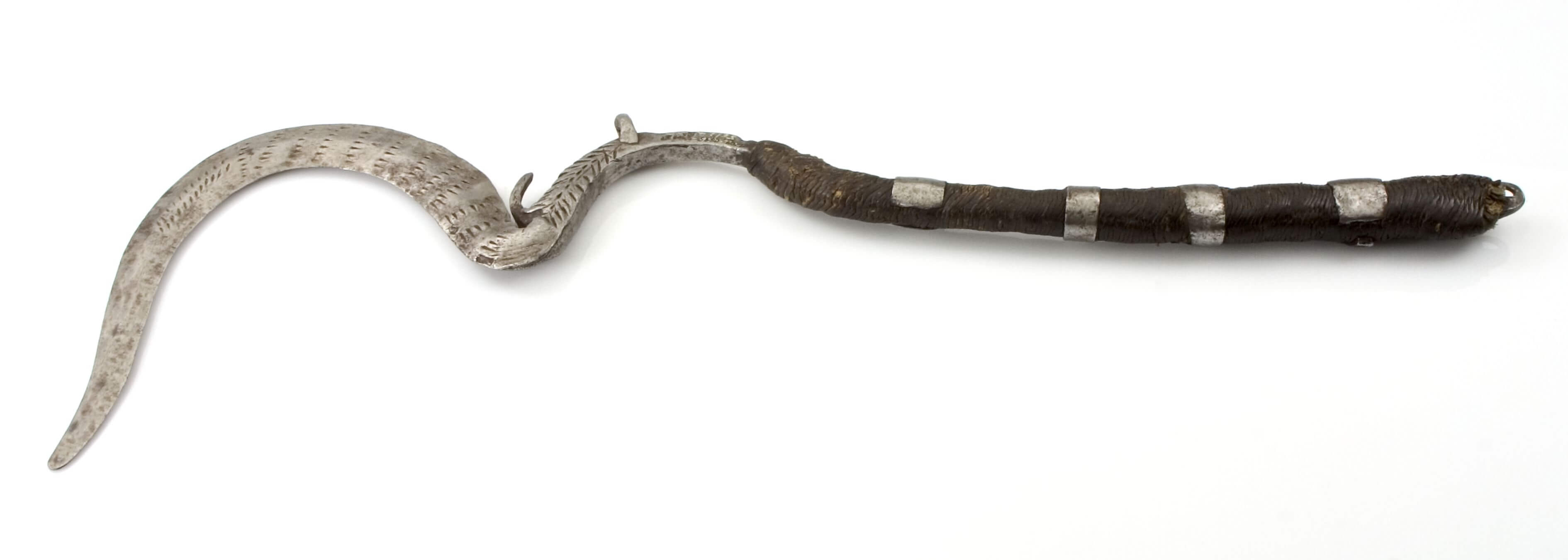 | Erweiterte Beschreibung | Die frühere Objektbezeichnung war „Wurfeisen“. In Absprache mit Tevodai Mambai (2021) von IB zu „Sichel“ geändert. Sie konnte im Krieg/Kampf verwendet werden, wurde aber auch bei Festen oder Beerdigungen von Angehörigen verschiedener Ethnien, die in den Bergen in der Region Extrêm-Nord leben, beim Tanz getragen. Heute Heute wird es als Zeichen kultureller Zugehörigkeit oder als Schmuck getragen, z.B. bei öffentlichen Anlässen oder Feierlichkeiten. Die Grundform der Sicheln ist sehr ähnlich bei verschiedenen Ethnien. Die Motive auf der Klinge unterscheiden sich je nach den Vorlieben der jeweiligen Schmiede. Sie können heute von Männern und Frauen getragen werden, von Frauen v.a. zum Tanz und von Männern als Schmuck/Prestigeobjekt. - Mit „Ngili Wuhum“ war vermutlich das heutige Guili gemeint. Der Ort befindet sich im heutigen Extrême-Nord im Departement Mayo-Tsanaga, an der Grenze zu Nigeria. Er wird v.a. von den Bana gewohnt. Was es mit der Bezeichnung „Wuhum“ auf sich hat, ist nicht nachvollziehbar (Tevodai Mambai und Isabella Bozsa, 8.09.2021). |