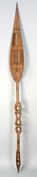 | Erweiterte Beschreibung | Anmerkung auf der alten Karteikarte: „Buruttu an der Niger-Mündung. Paddel aus leichtem, hellen Holz (durchbrochen gearbeitet). Wurden für den Handel gearbeitet, aber noch von den Eingeborenen benutzt.“ Burutu war ein wichtiger Hafen der Niger Company in der britischen Kolonie Nigeria. Über den Niger und Benue war Garua an das Meer angebunden. Die Niger Company hielt das Schiffahrtsmonopol auf dem Niger, so dass die deutsche Kolonialadministration in Garua für Transporte Dampfer der Niger Company chartern musste (Ritter 1912: 95). Von Burutu verkehrte die Woermann-Linie, womit Strümpell Sammlungsobjekte für das Berliner und Braunschweiger Museum nach Deutschland schickte (SMB-EM, I/MV 741 Bl. 174, Strümpell an das Königliche Museum für Völkerkunde Berlin vom 20.09.1907). |