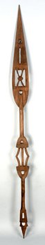 | Erweiterte Beschreibung | Anmerkung auf der alten Karteikarte: „Buruttu an der Niger-Mündung. Paddel aus leichtem, hellen Holz (durchbrochen gearbeitet). Wurden für den Handel gearbeitet, aber noch von den Eingeborenen benutzt.“ Burutu war ein wichtiger Hafen der Niger Company in der britischen Kolonie Nigeria. Über den Niger und Benue war Garua an das Meer angebunden. Die Niger Company hielt das Schiffahrtsmonopol auf dem Niger, so dass die deutsche Kolonialadministration in Garua für Transporte Dampfer der Niger Company chartern musste (Ritter 1912: 95). Von Burutu verkehrte die Woermann-Linie, womit Strümpell Sammlungsobjekte für das Berliner und Braunschweiger Museum nach Deutschland schickte (SMB-EM, I/MV 741 Bl. 174, Strümpell an das Königliche Museum für Völkerkunde Berlin vom 20.09.1907). |