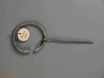 | Description | offen, Ober-, Unterseite: Verzierungen, verzinkt ?, am Reifen hängt ein nagelartiger Gegenstand |