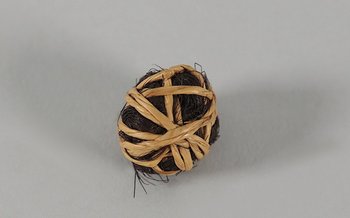 | Description | dunkelbraune Haare eines Tieres, sind mit Stroh umwickelt und umflochten (Bällchen), |