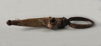 | Description | a: Dolch, b: Scheide, Eisenklinge mit eingeritzten Ornamenten, Griff: ovaler Messingring, Lederscheide, Klinge |