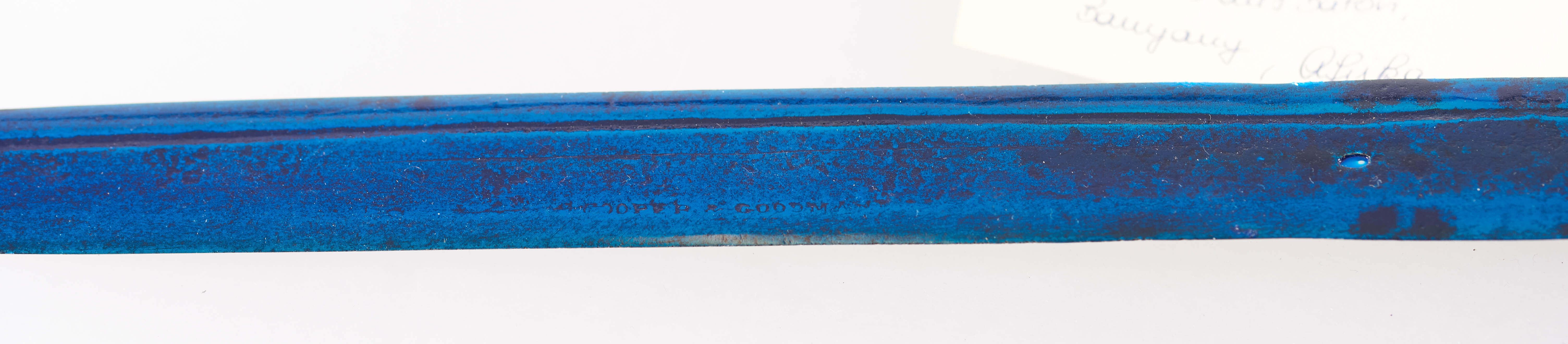 | Label/inscription | Etikettrest am Knauf |