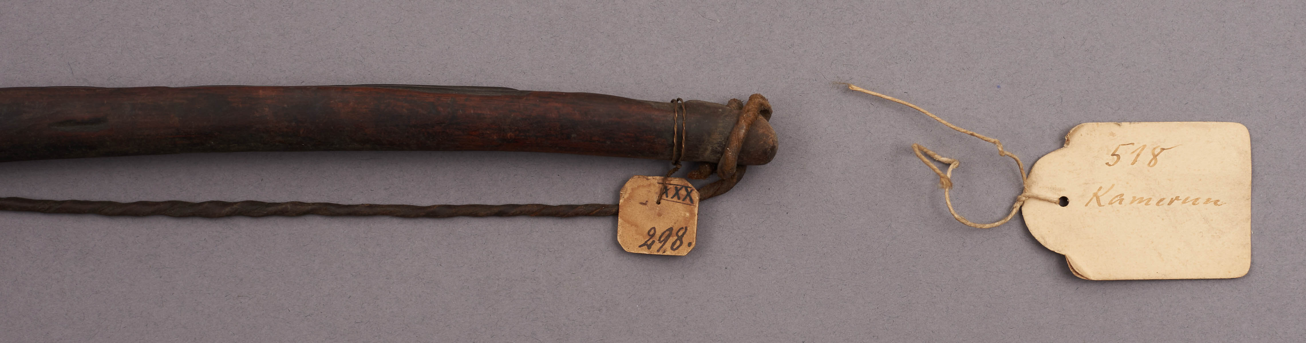 | Description | Hölzerner Bogen aus Tibati. Erhalten vom Museum für Völkerkunde Berlin, aus der "Sammlung von Prltnt. Morgen (Hinterland von Kamerun)". |