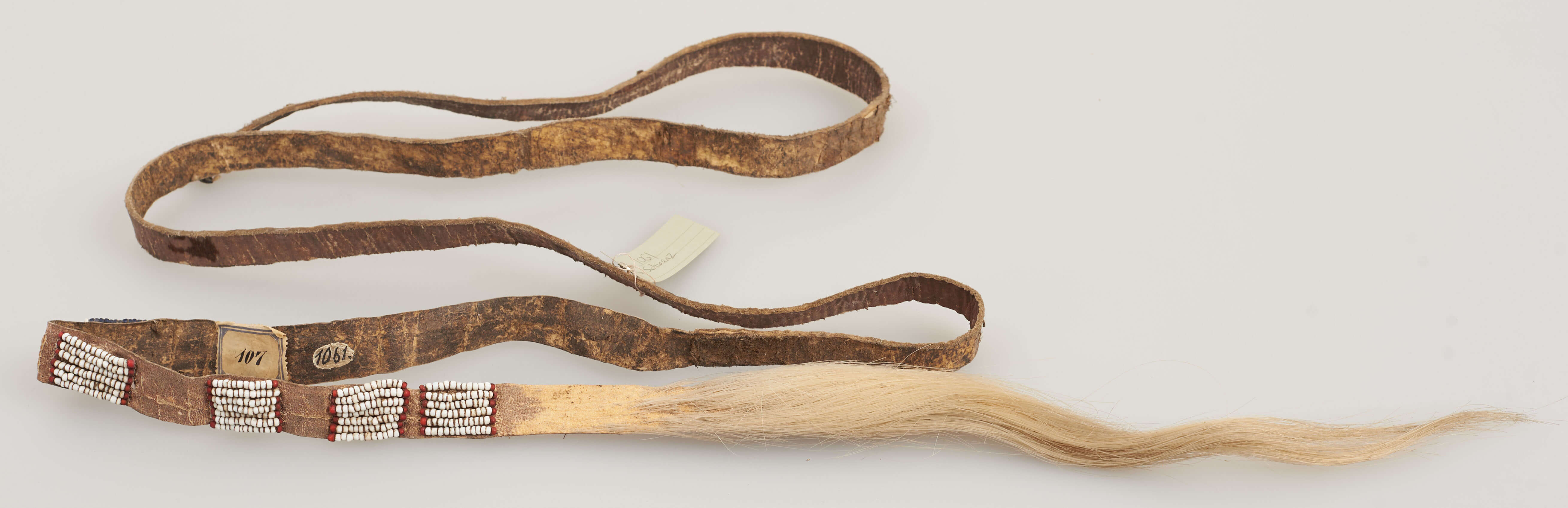 | Description | Schwanz aus Leder. Im Verzeichnis beschrieben als "Schwanz aus Leder geschnitten mit Perlen besetzt". |