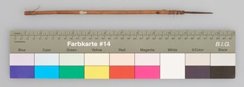 | Description | Pfeil mit Holzschaft, Metallspitze und gekerbtem Ende. |