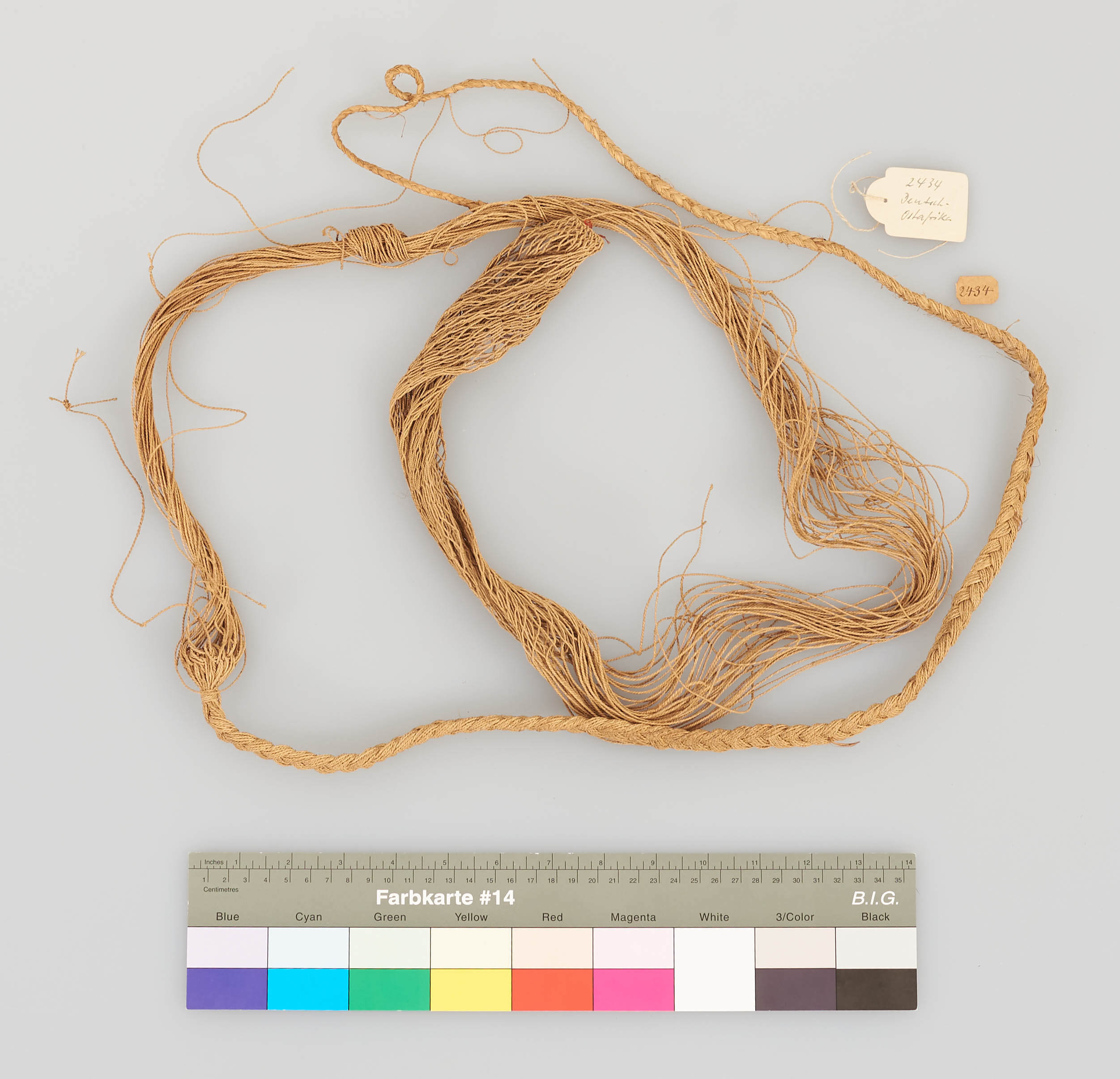 | Description | Wurf- oder Schleppnetz aus pflanzlichem Material. Im Originalverzeichnis unter der Gruppe "Diverse Flechtarbeiten aus Ussukuma" verzeichnet. |