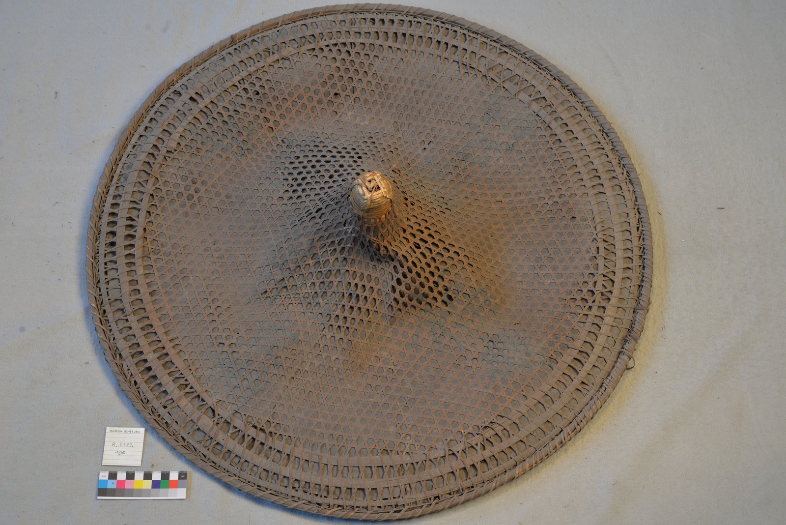 1893 schenkte der Sohn des Lüneburger Arztes Jüdell dem Museum acht Hüte aus dem Norden Vietnams/Tonkin und von der chinesischen Insel Hainan. Heute sind zehn Hüte erhalten, die sich dieser Region zuordnen lassen. Drei davon, darunter dieser, sind sich so ähnlich, dass sie wahrscheinlich aus der selben Quelle und damit von Jüdell stammen. Bilder vergleichbarer Hüte aus Tonkin gibt es im Musée du Quai Branly (Bspw. Inventarnummer 71.1931.42.338, Negativnr. 1934-1718). Sie waren mit Öl gegen Regen geschützt. Der Zuordnung widerspricht eine später befestigte Marke, die den Hut der Eingangskatalognummer 1917:68 zuweist. Das ist ein Hut unbekannter Herkunft (vermutet wurde Siam) aus dem Nachlass der Mutter des Fabrikanten J. G. Leppien. Wegen der Ähnlichkeit mit den Objekten R.3179.98 und R.3179.99 und den Nachweisen von Hüten aus Tonkin in Paris ist davon auszugehen, dass die Marke am falschen Hut angebracht wurde.