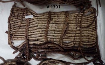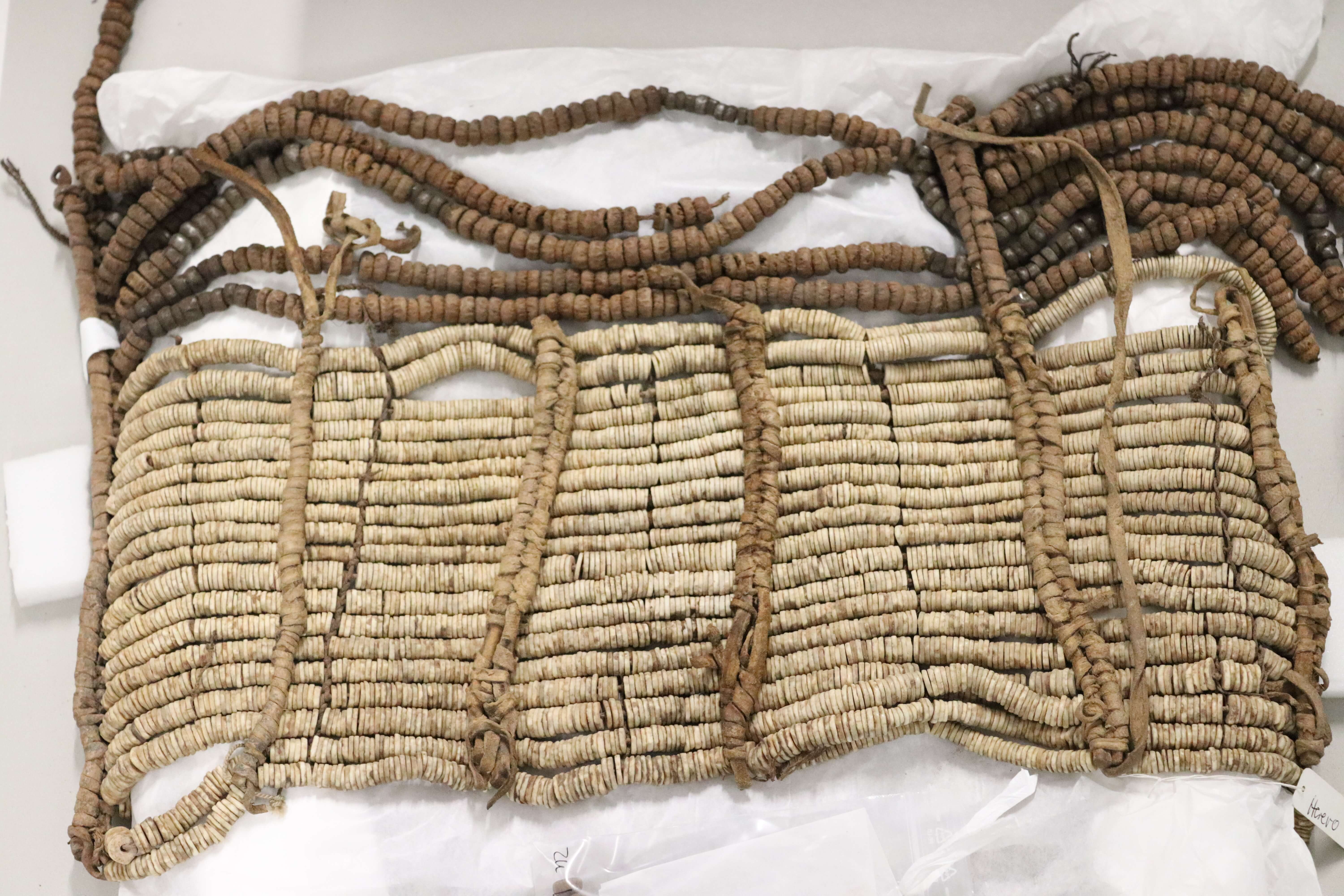 Dieses einer Korsage ähnelnde Objekt sowie mindestens ein ekori, die Bein-Spiralen V 1.405 ff. und möglicherweise auch noch weitere Kleidungs-/Schmuckstücke von Hererofrauen könnten ein Geschenk des Postinspektors (später: Postdirektor) Wilhelm Diers aus dem Jahre 1902 sein. Diers war um die Wende 19./20. Jahrhundert Postbeamter im damaligen Deutsch-Südwestafrika (stationiert in Windhuk). Siehe Bibl. Roemer-Museum Signatur U 53/75, Zeitungsausschnitte betreffend das Roemer- Museum, Nr. 156, 27.09.1902, Postinspektor Diers schenkt "ganze Anzahl von Kleidungsstücken der Herero-Frauen aus Deutsch-Südwestafrika", darunter "den merkwürdigen helmartigen Kopfputz aus Leder und Eisen, ferner Hals- und Beinketten aus Eisenperlen und Leder", letztere ca. 4,5 Kilo schwer. Da die Objekte im Inventarbuch Diers jedoch nicht namentlich zugeordnet sind, wurde unter Vorbesitzer, Zugangsjahr usw. hier jedoch "unbekannt" eingetragen. Falls das Objekt von Wilhelm Diers stammt, ist es ein Geschenk aus dem Jahr 1902 und er ist der Vorbesitzer.