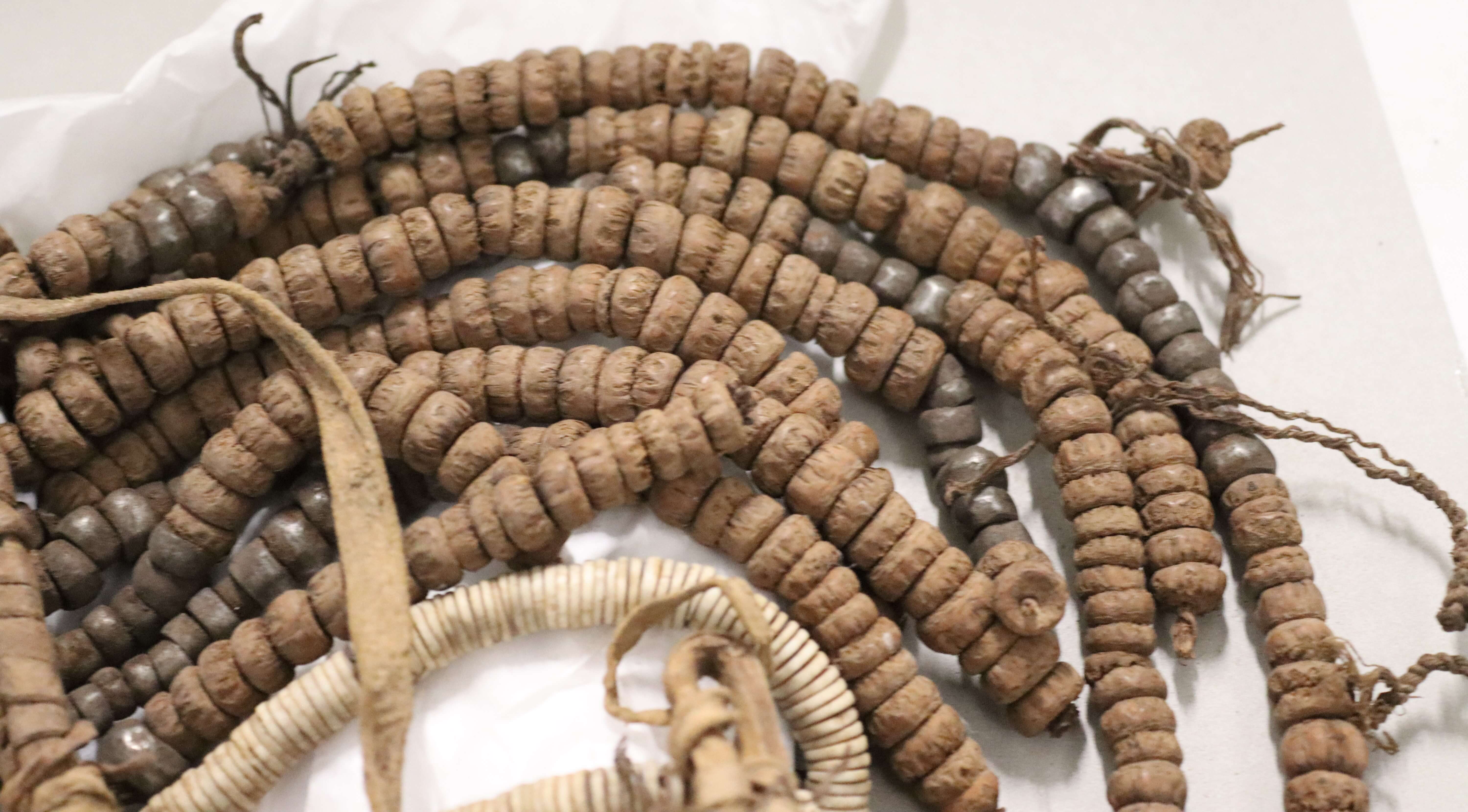 | Transcript of inventory book entry | Kaross wie V 1390. Unter den Straußeneischeiben einige Samen. |