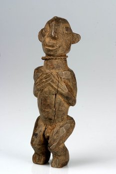 | Description | Viereckiger Medizinalienbehälter auf dem Bauch. Um den Hals hat die Figur eine Schnur. Die vorderen Teile der Füße sind abgebrochen. Die Schreibweise der kulturellen Zuschreibung variiert in den Quellen; auf den alten Karteikarten im Museum wird überwiegend die Bezeichnung "Bangua" verwendet. |