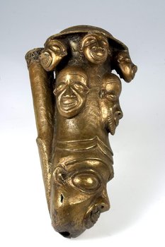 | Description | Solche Zeremonialpfeifen gehörten zu den wichtigsten Statussymbolen des Königs. Bei großen Zeremonien und Festen wurden sie mit anderen königlichen Hoheitszeichen und Besitztümern zur Schau gestellt. Auch geschnitzte königliche Ahnenfiguren wurden häufig mit Attributen wie Pfeife oder Trinkhorn dargestellt. Der Rauch dieser Pfeife sollte den Feldern und Frauen Fruchtbarkeit verleihen können und Kontakt zu den Ahnen herstellen. Ikonografisch ist sie nach Aussagen von Hervé Youmbi (2021) der Region Nordwest oder Bamoun zuzuordnen. |