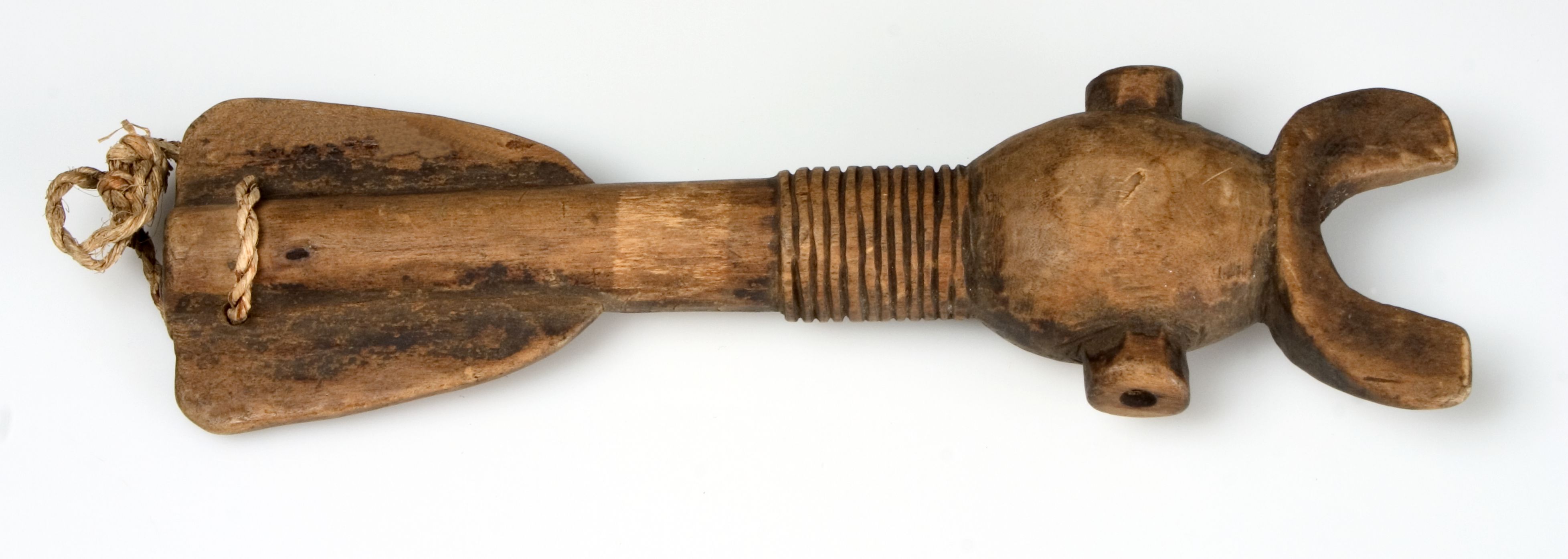 | Description | Von Knöpfli als Signalflöte "ga-kwan" bezeichnet. Früher zur Aussendung von Kriegssignalen benutzt, heute vor allem bei Totengedenkfeiern höher gestellter Personen. S. 254: "Bei solchen Anlässen signalisiert ga-kwan den Höhepunkt der Zeremonie, nämlich der Zeitpunkt, da der Nachfolger oder die Nachfolgerin zum ersten Mal in der Öffentlichkeit erscheint." Knöpfli meint, dass die Flöte heute auch auf der Jagd eingesetzt wird. Außerdem wird sie von der Geheimgesellschaft "Voma" verwendet Bamignie, Dorf Region Nordwestlich von Bali (Quelle: Hutter 1902: 22), Ngie-Sprache, Ort auch "Baminge" in anderen kolonialzeitlichen Quellen. heutiger Name? |