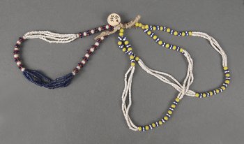 | Description | geschlossen, Anhänger: Doppel-Perlenschnur, Muster: gelbe, weiße, rote, blaue Perlen |