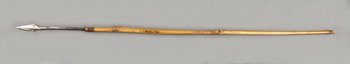| Description | mit Eisenspitze, vergiftet, ohne Fiederung, eingedornte Spitze, 2 Widerhaken, Bambusschaft mehrmals gespalten, u-förmige Kerbe |