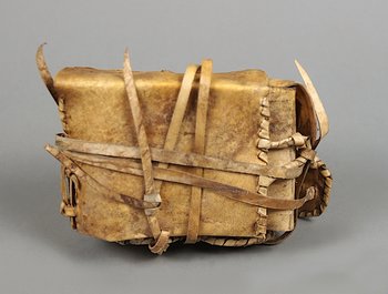 | Description | mit langem Lederriemen, zwei hölzerne Dosen mit Deckel, in Lederfutteral, Schlaufe zur Befestigung am Bauch |