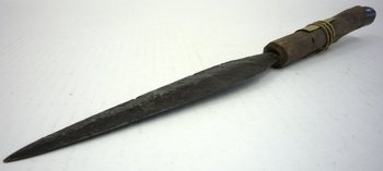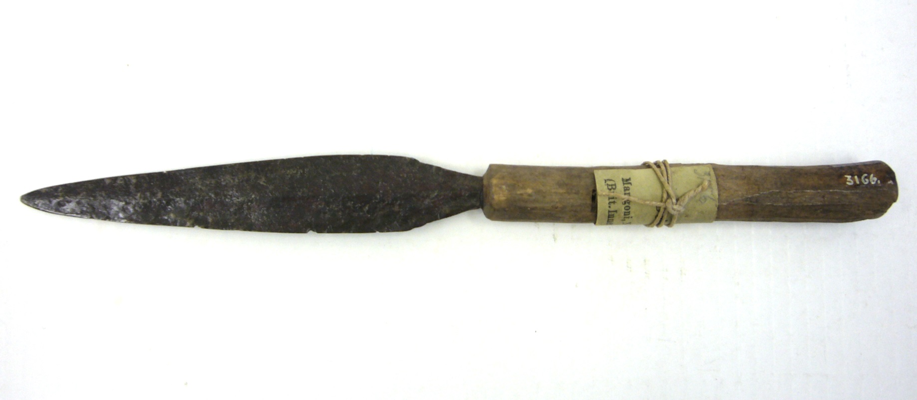 | Inscription au livre d'inventaire | "Messer mit dolchartiger Klinge und einfachem Holzgriff, welches bei der Töpferei der Ukissi gebraucht wird." |