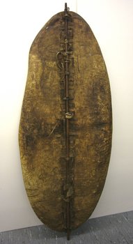 | Inscription au livre d'inventaire | „Großer Kriegsschild von länglich ovaler Form, aus einem Thierfell gebildet.“ |