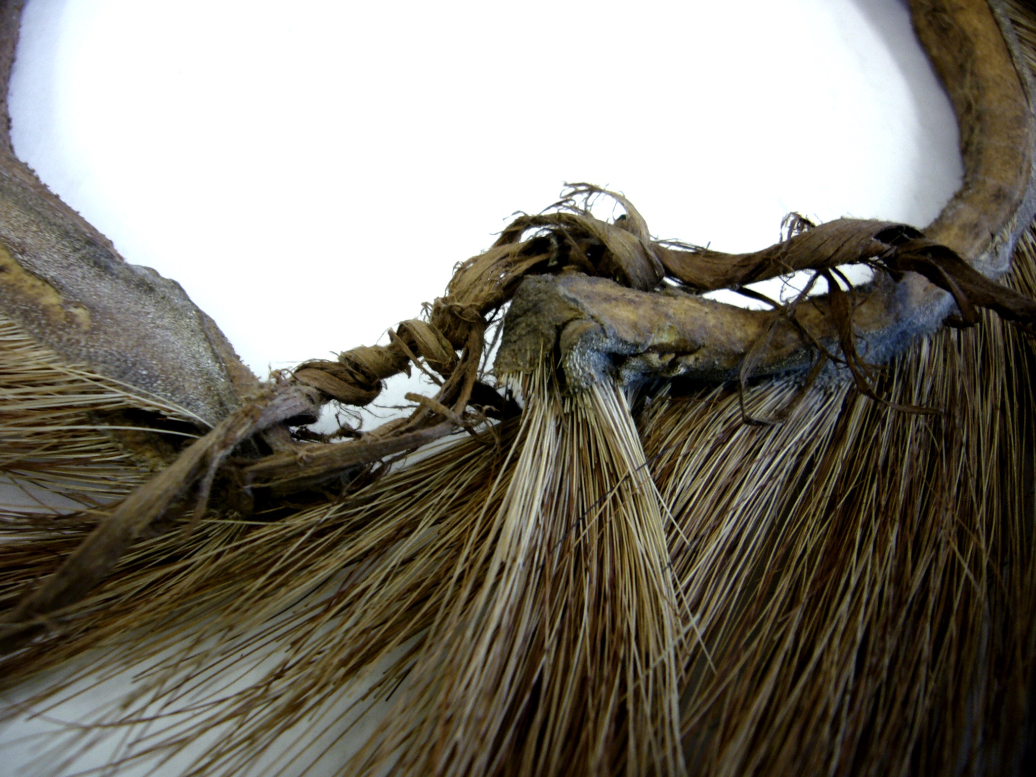 | Inscription au livre d'inventaire | „Hals- und Kopfschmuck von Thierfell und Bast.“ |