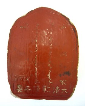 | Inscription/impression/étiquette | Rückseitige Beschriftung auf Tibetisch, Chinesisch und Mandschurisch. |
