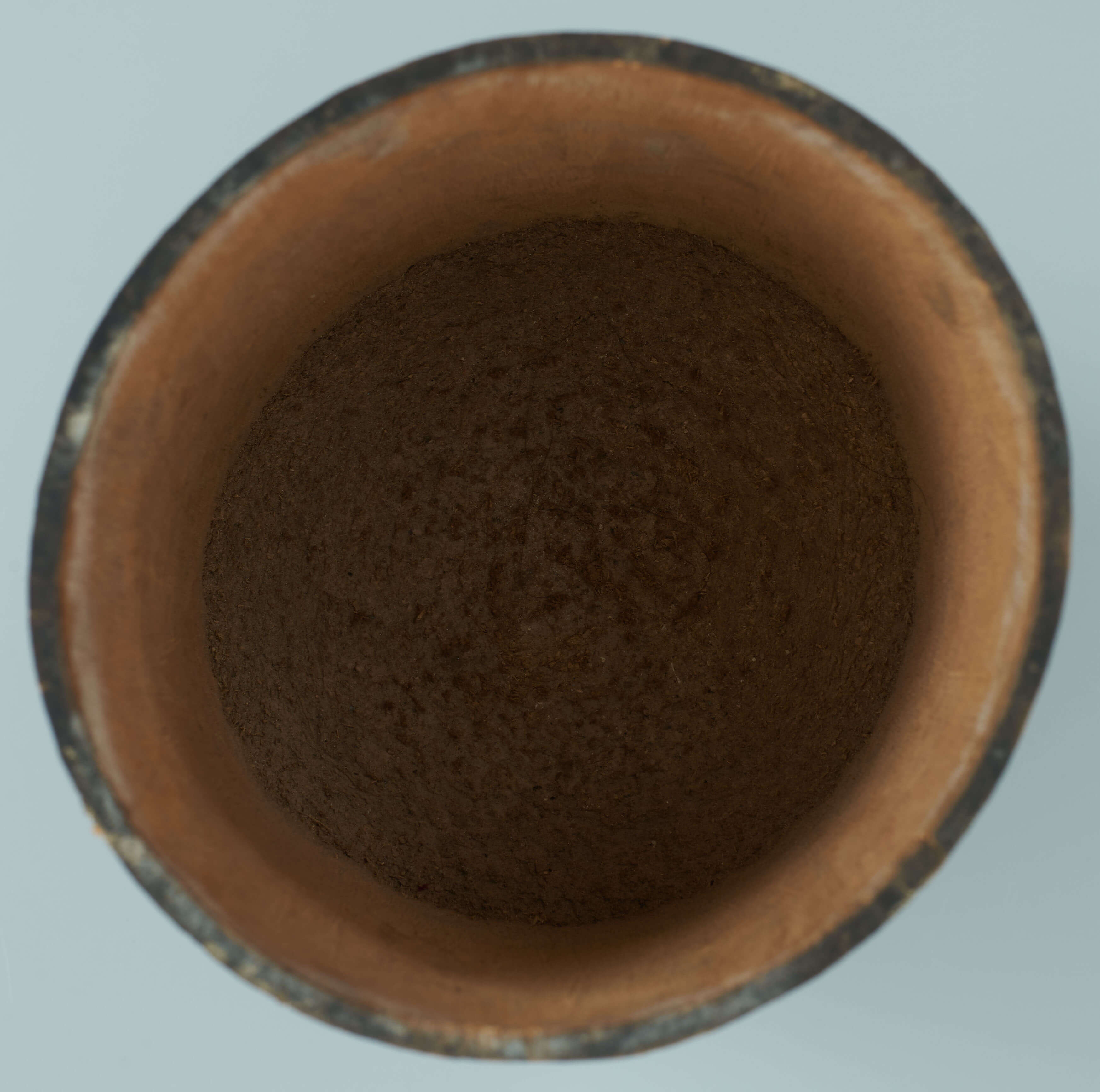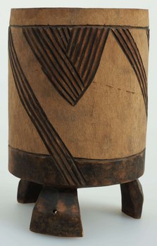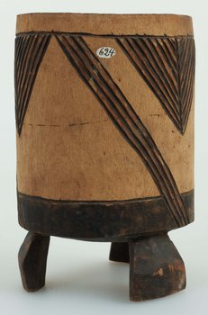 | Description | Hölzernes Gefäß für Milch, mit Brandverzierung, auf drei Füßen. |