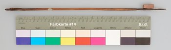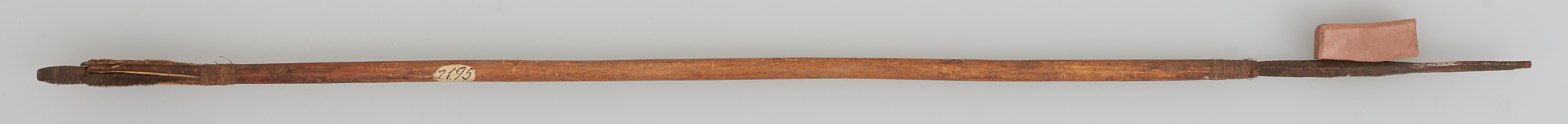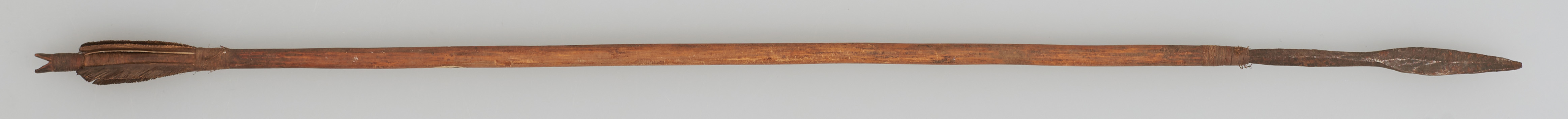 | Description | Pfeil mit Holzschaft, Metallspitze und Flugsicherung. |