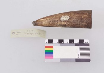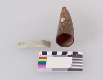 | Description | Schröpfkopf aus Horn. Erhalten vom Museum für Völkerkunde Berlin, aus der "Sammlung des Leutnants Bischoff, Ostafrika". |