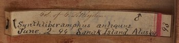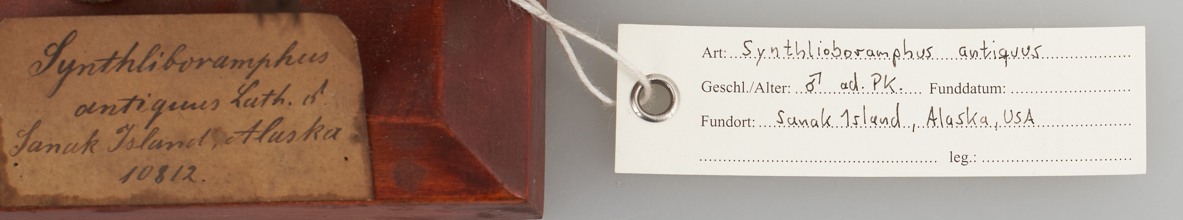 | Inscription/impression/étiquette | Etikett: Synthliboramphus antiquus Lath. männlich, Sanak Island, Alaska. 10812.; Etikett: Col. Of Littlejohn. |