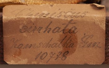 | Inscription/impression/étiquette | Etikett: Cheniscus cirrhata. Kamschatka. Gon. 10778.; unter Sockel mit Bleistift: 21 |