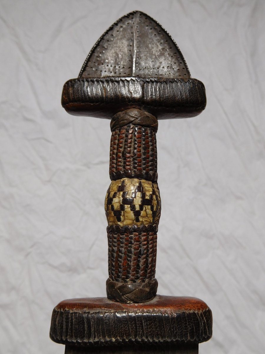 | Autres objets des personnes liées dans d'autres collections/musées | Ein ähnlicher Dolch taucht in einer Privatsammlung auf, siehe Fischer & Zirngibl 1978, S. 23, Abb. 21. Dort heißt es: "Dagegen wird der Armdolch mit dem Ledergriff und dem spatenförmigen Knauf am Oberarm getragen, ebenfalls verboren unter dem Ärmel des Gewandes. Man findet diese Dolchform von der Zentral-Sahara bis nach Nord-Kamerun, von Nigeria bis zur äthiopischen Grenze im Sudan." |