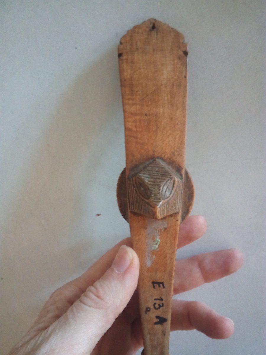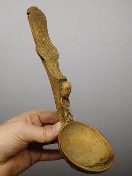 | Description | In den Löffel sind Verzierungen und eine Figur geschnitzt. Auf der Rückseite ist eine kleine Erhebung. |