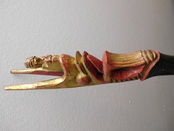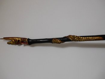 | Description | Stab mit Tierkopf und weiteren Verzierungen. |