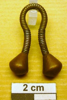 | Description | Ohrring mit verdickten Enden und Seilmuster. |