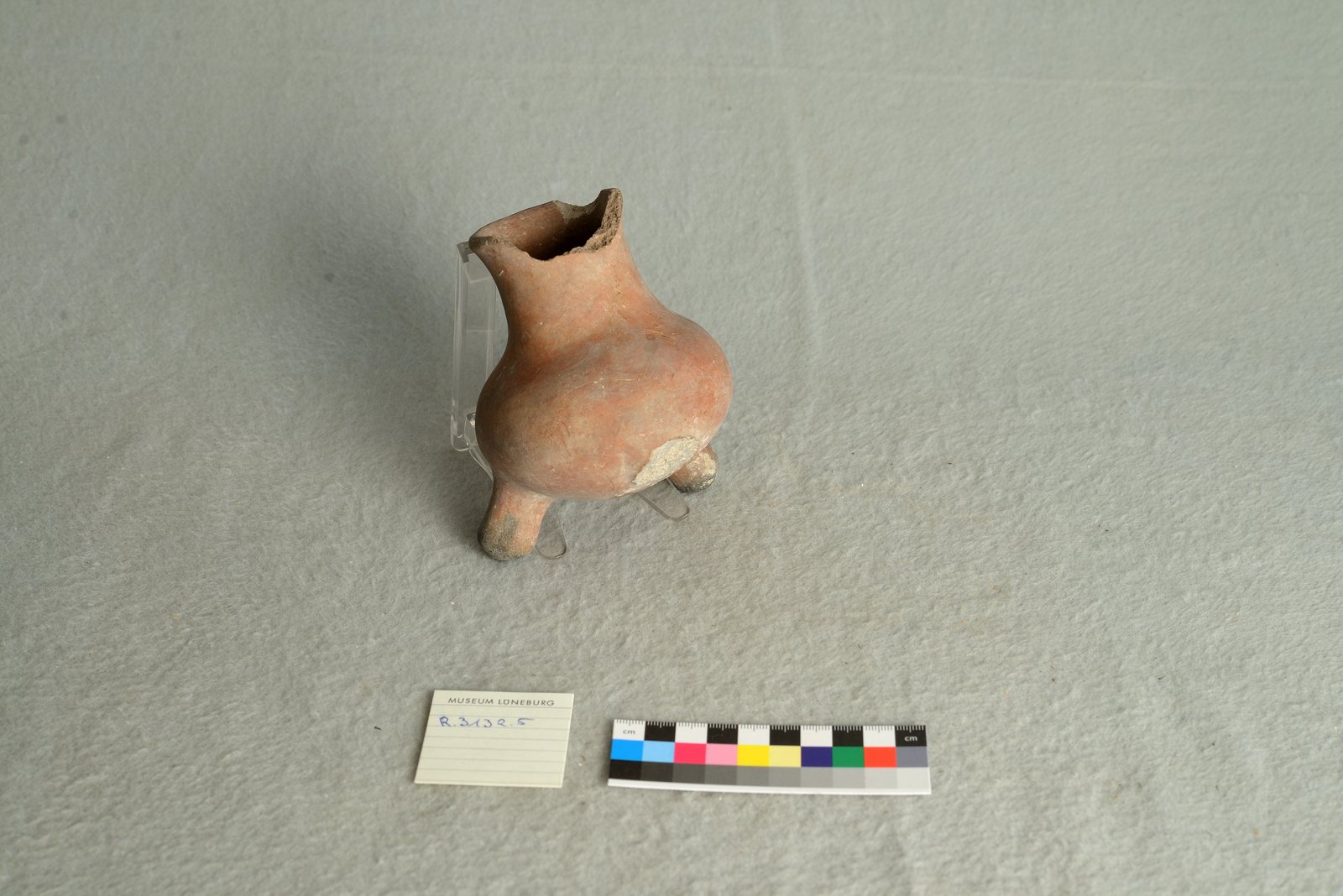 | Description | Gefäß aus rötlichem Ton, Stellen abgebrochen. |