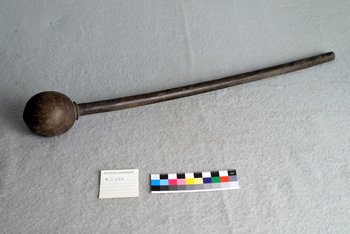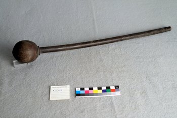 Die Keule stammt wahrscheinlich aus der Sammlung von Hans Knop und kam dann 1880 ins Museum. Sie lässt sich vermutlich den Zulu zuordnen.