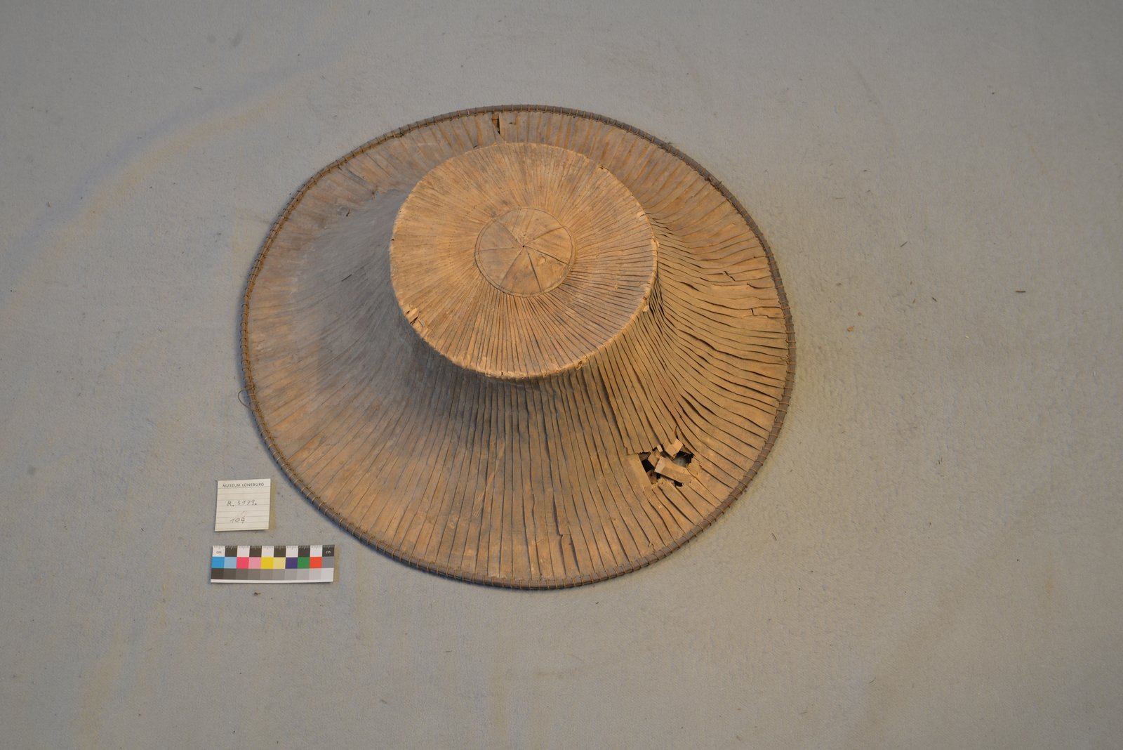 1893 schenkte der Sohn des Lüneburger Arztes Jüdell dem Museum acht Hüte aus dem Norden Vietnams/Tonkin und von der chinesischen Insel Hainan. Heute sind zehn Hüte erhalten, die sich dieser Region zuordnen lassen. Drei davon sind wohl die Objekte R.3179.98 bis R.3179.100. Es ist wahrscheinlich, dass dieser Hut eines der anderen fünf Stücke ist.