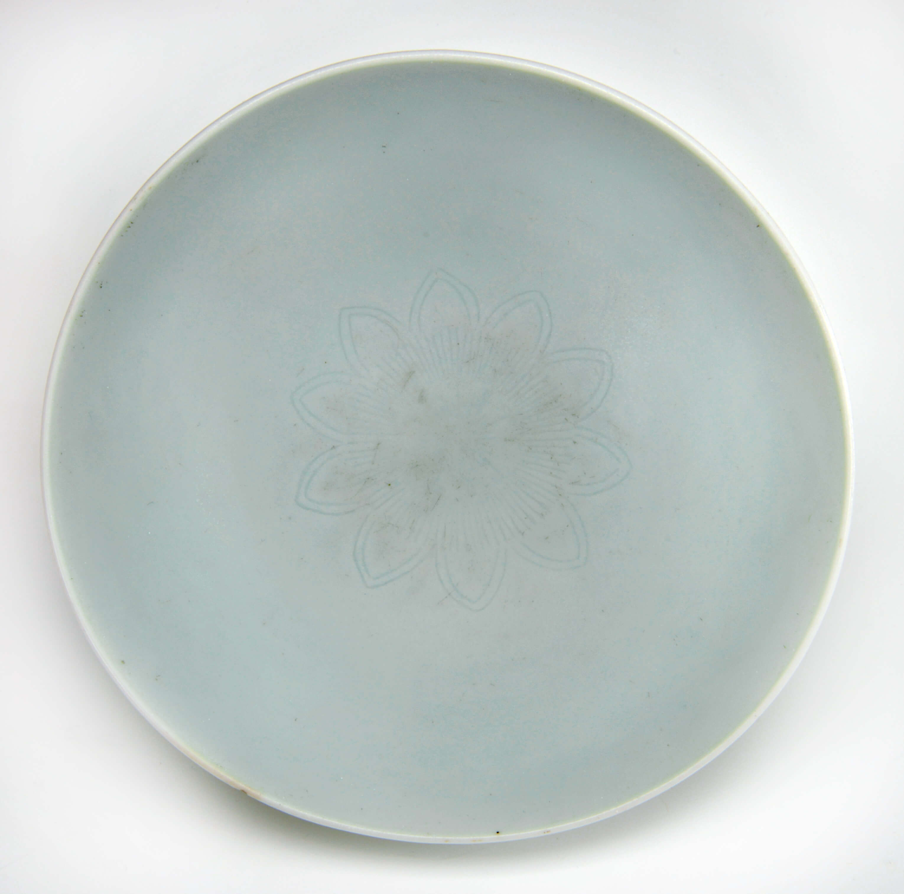 | Description | Die Schale ist, mit Ausnahme der netural glasierten Basis, mit einer sehr hellen Seladonglasur überzogen. Dekor in flachem Relief und graviert: Auf der Außenwandung eine umlaufende Blätterranke mit vier sternenförmigen Blüten über einem doppelten Lotosblattkranz unten; im Inneren auf dem Grund ist eine formalisierte Blüte eingraviert. Der Reliefdekor erscheint heller, da dort die Glasur dünner liegt. Die sechs-Zeichen-Marke innerhalb eines Doppelrings ist in Unterglasurblau auf die Basis geschrieben. Ursprünglich Sammlung Ernst Ohlmer. Weitere Beispiele befinden sich in der Wah Kwong Collection (Ch'ing Porcelain from the Wah Kwong Collection, Kat. Nr. 12) und ehemals, in der Eurmorfopoulos Collection (Hobson, The Eumorfopoulos Collection, V, Kat. Nr. E 314). Das Objekt ist im Katalog durch Ohlmers Sammlung unter der Nr. 87 (1932) und Nr. 11 (1898) zu finden. |