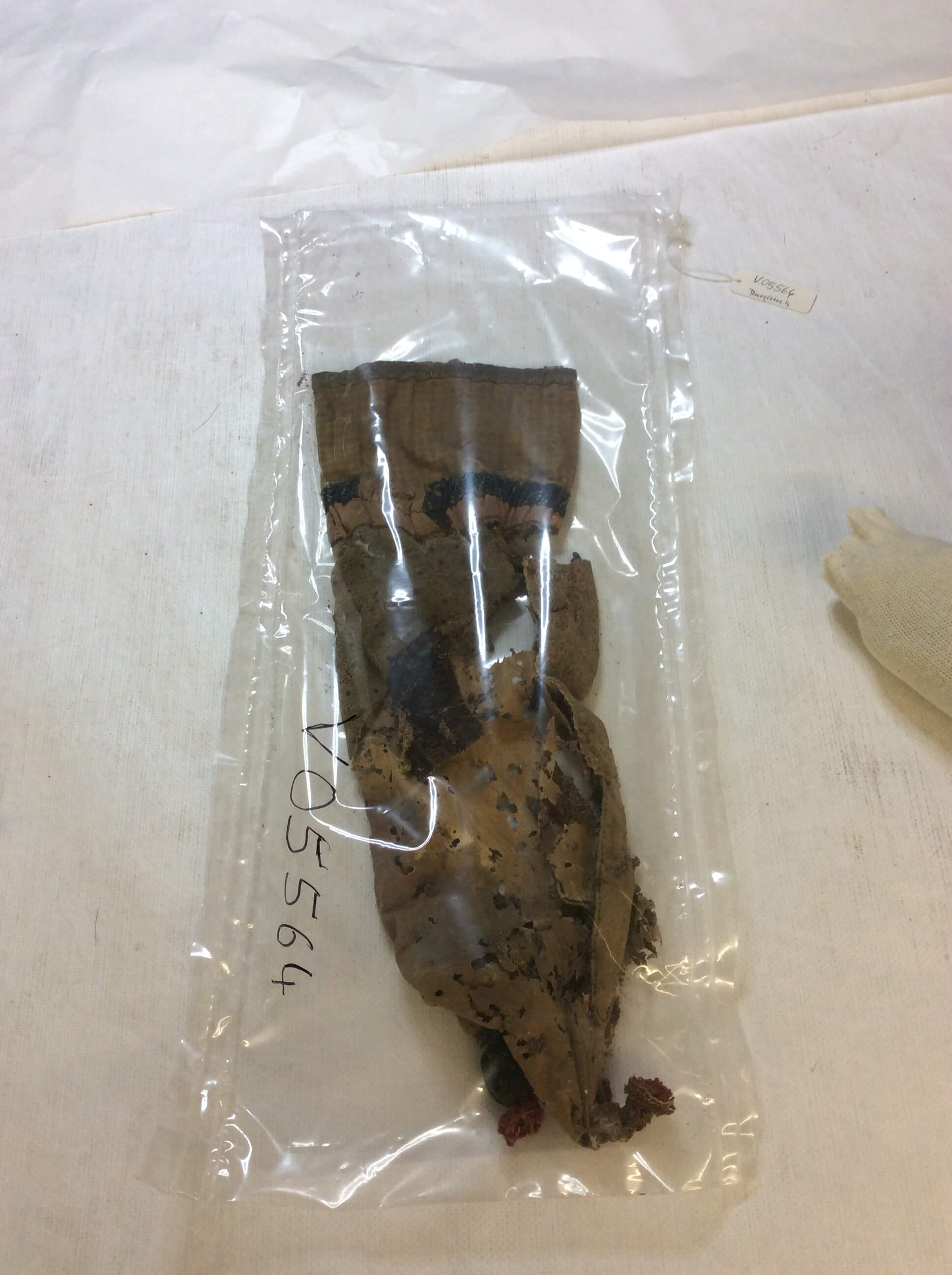 | Inscription au livre d'inventaire | Tabaksbeutel aus Fell geflickt mit buntem Kattun. |