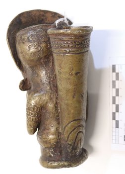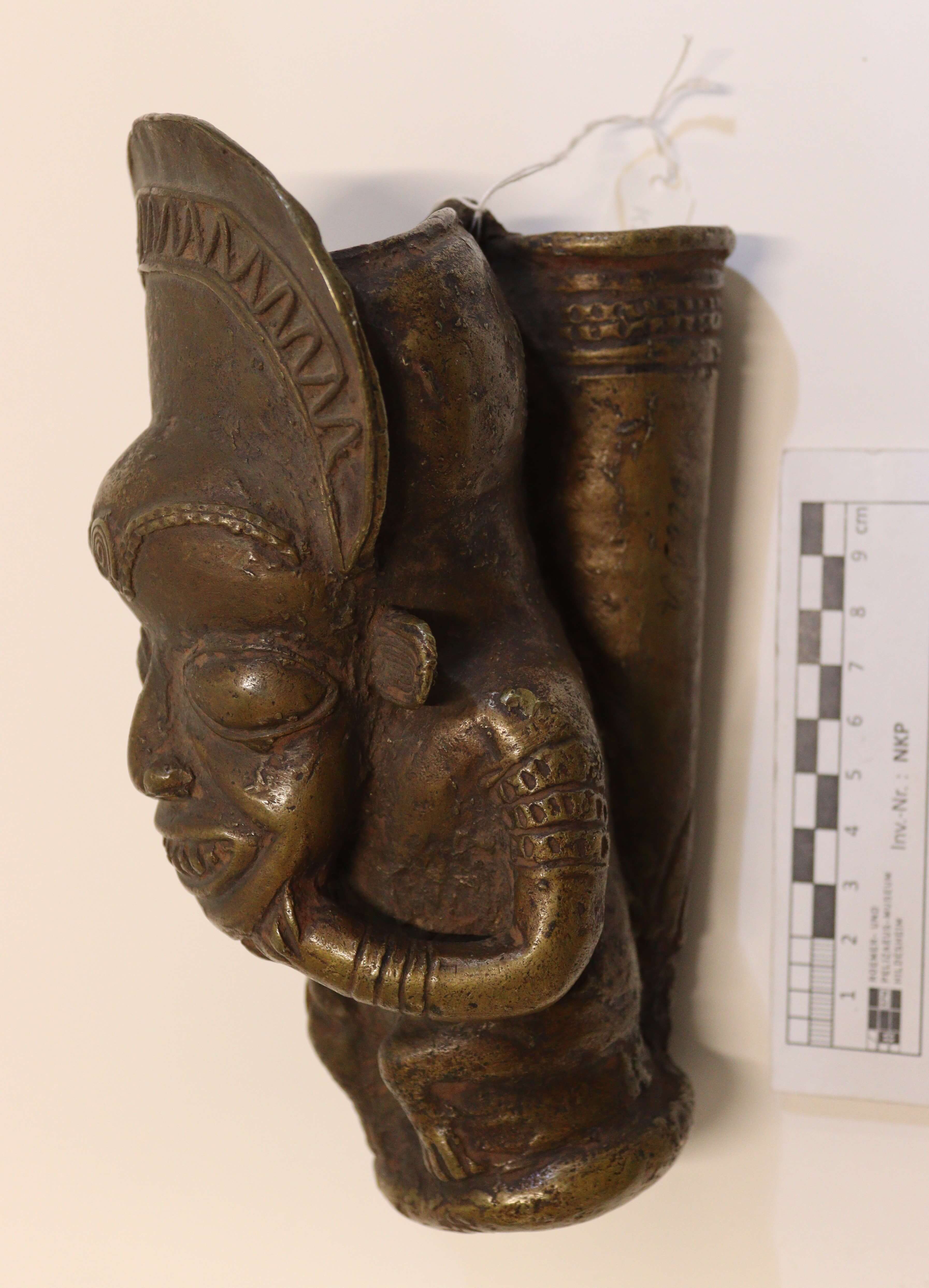 | Inscription au livre d'inventaire | Pfeifenkopf aus Messing gegossen (in Fotm menschlicher Hockerfigur). (Solche Pfeifenköpfe werden nur in Bamum und Bagam gegossen. Die Form ist die des Südbezirkes des Graslandes.) Kamerun, Grasland. Museum für Völkerkunde Berlin Berlin (Walden) Kauf. (Unter Inventarnummer:) 8/12. 22 Rathaus. |