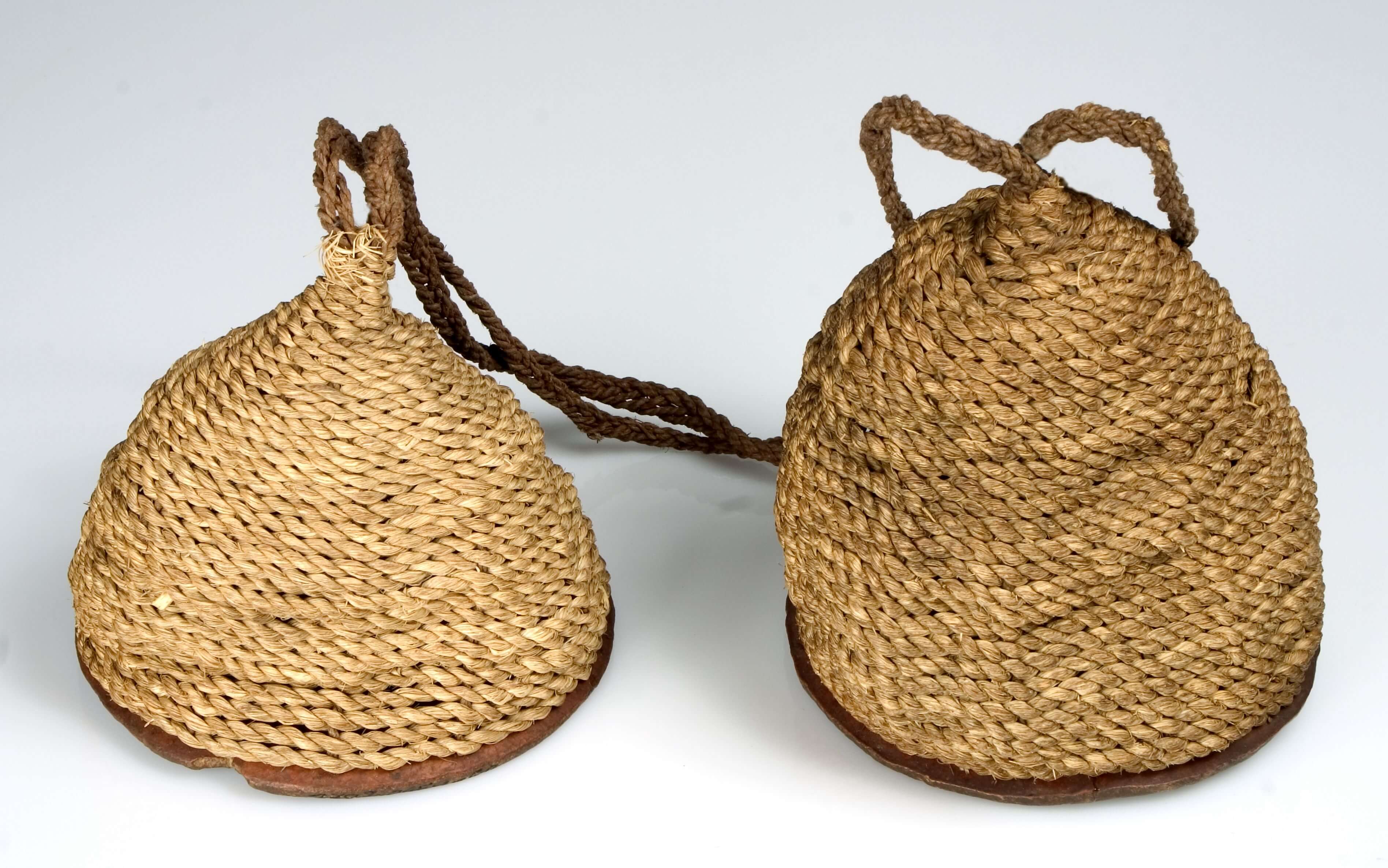| Description | Anmerkung auf der alten Karteikarte: „Tanzklappern, glockenförmig aus Strick geflochten mit flachem Lederboden u. Strick zum halten; innen kleine Steine. Mandaragebirge, Lam-Heiden (wie bei allen Heiden der Waldgebiete)“ Nach Wente-Lukas (1976, S. 242) werden diese Rasseln bei den Stämmen des nördlichen Mandaragebirges von den Frauen beim Tanzen um beide Waden oder Fußknöchel gebunden oder in den Händen gehalten. Gefüllt waren sie mit Bohnenfrüchten. Als ethnische Zuordnung ist auf der kolonialzeitlichen Karteikarte "Lam-Heiden" angegeben. Lam heißt heute ein Ort im Departement Mayo-Louti in der Region Nord. Er liegt neben Guider und wird überwiegend von den Guidar bewohnt. Demnach kann das Objekt auf die Guidar zurückgehen (Tevodai Mambai und Isabella Bozsa, 8.09.2021). |